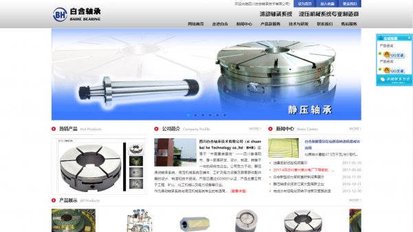 四川白合軸承技術有限公司(Si Chuan Bai He Bearing Technology co.,ltd-BHB)座落于“中國重裝基地”——四川省德陽市,是一家集研發、設計、制造、銷售于一體的綜合性企業。公司致力于動、靜壓滑動軸承系統、液壓機械系統及輔件、工礦及電力設備及其零部件配件等的設計、制造和技術咨詢。產品已通過ISO9001認證,并申請相關專利,產品主要應用于工程、礦山、化工機械以及電力設備等行業。